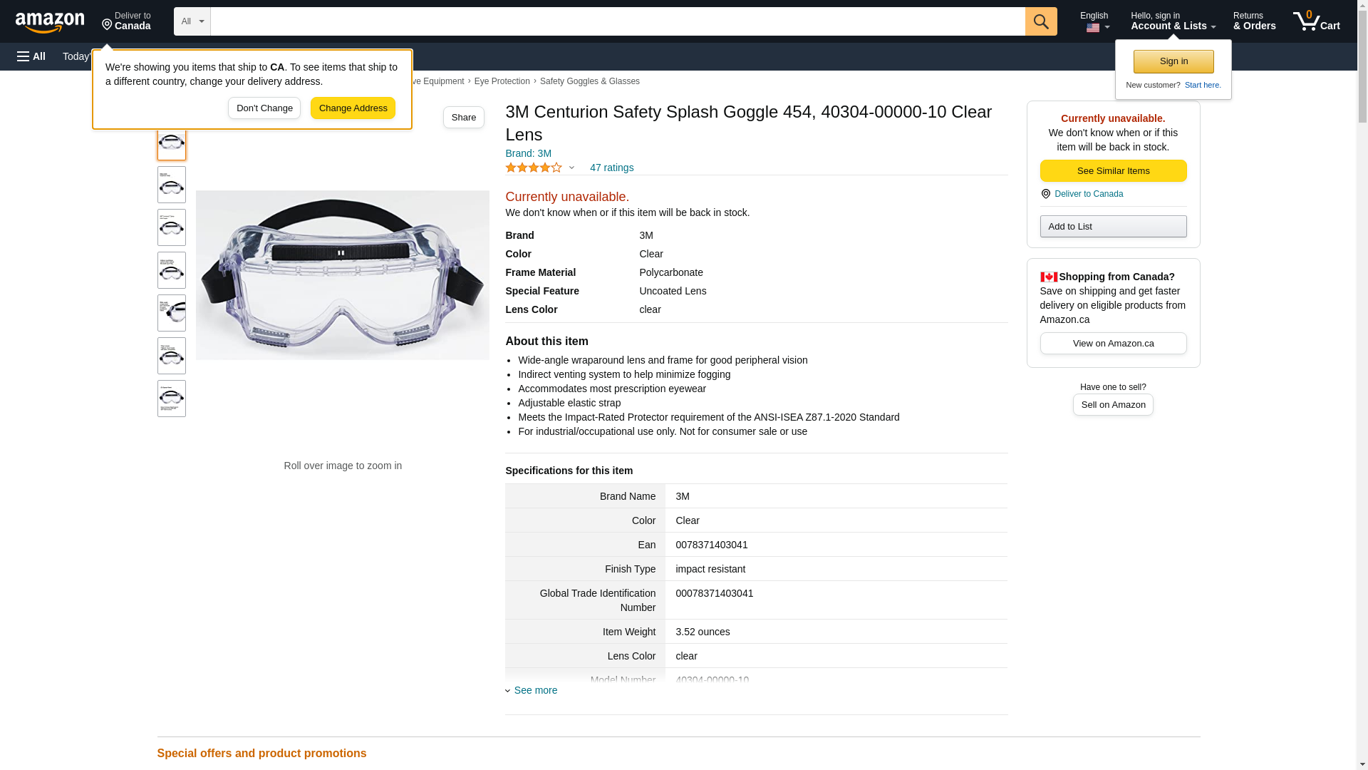 3M(TM) Centurion(TM) Safety Splash Goggle 454, 40304-00000-10 Clear Lens 10 ea/case