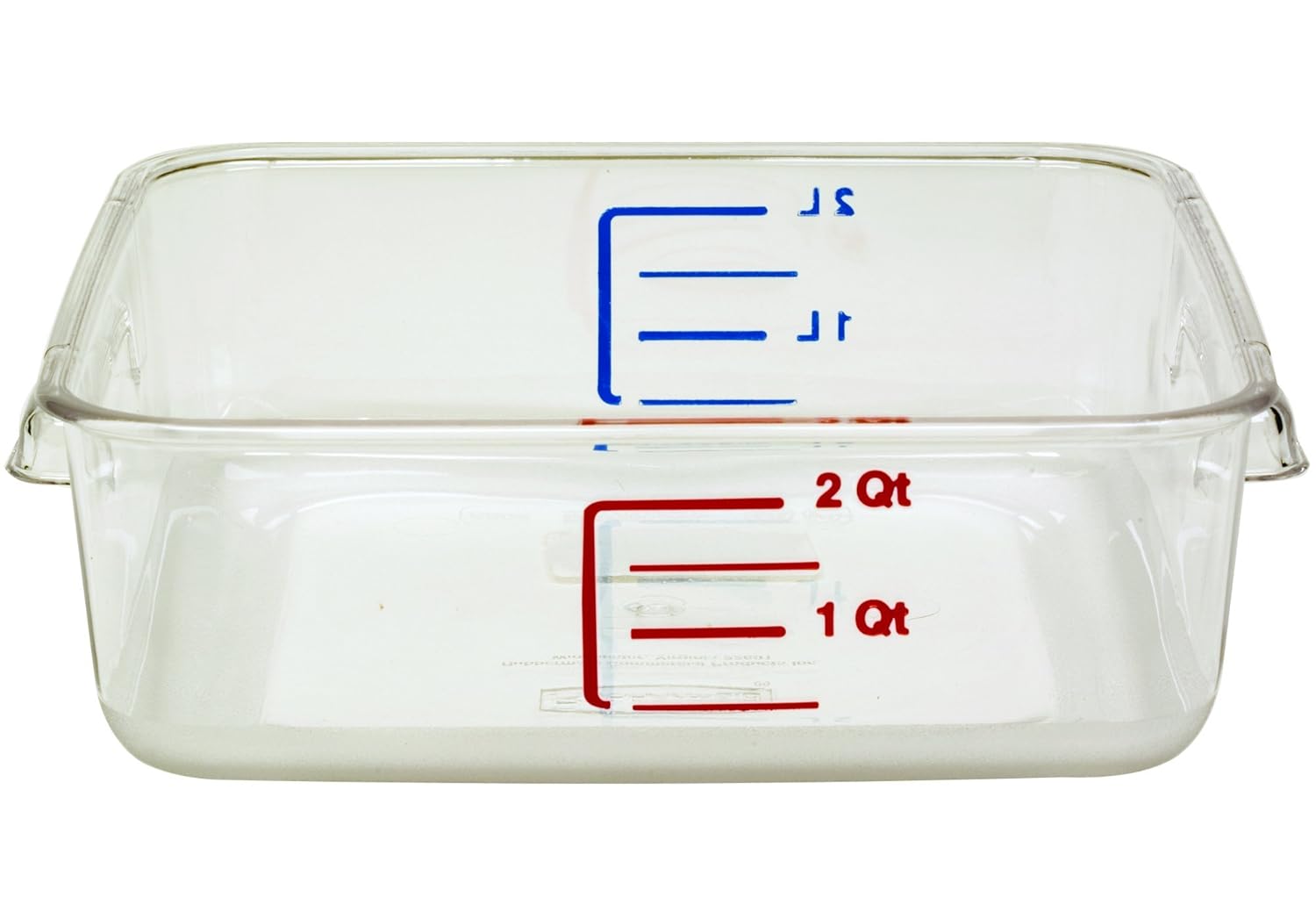 Rubbermaid Commercial Products Plastic Space Saving Square Food Storage Container For Kitchen/Sous Vide/Food Prep, 2 Quart, Clear (Fg630200Clr)