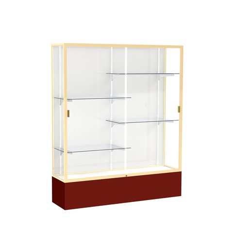 Waddell Spirit White Back Display Case, 60W by 72H by 16" D, Champagne Gold Finish with Maroon Base