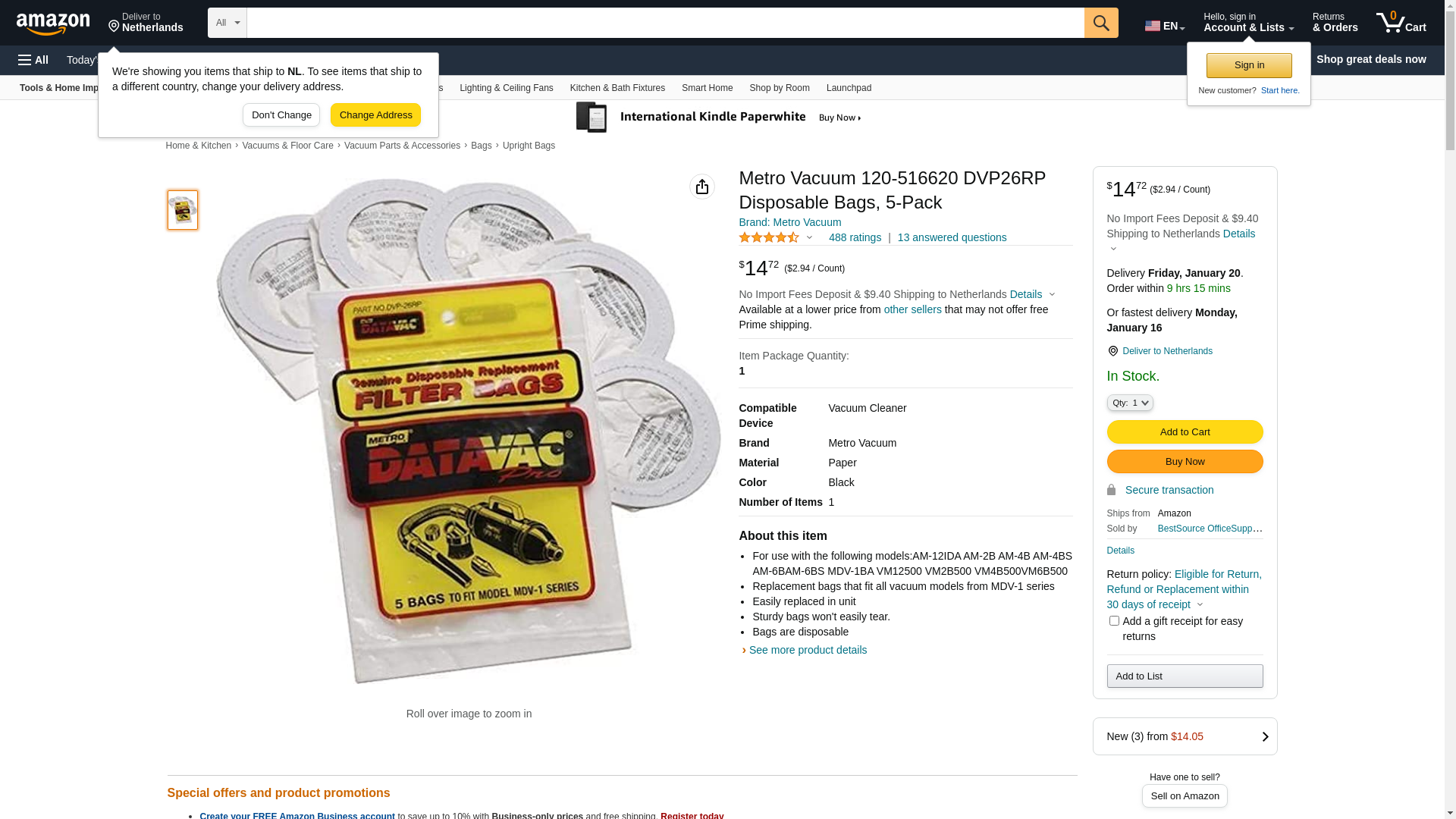 Metro Vacuum 120-516620 DVP26RP Disposable Bags, 5-Pack, 5 Count