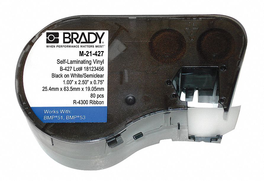 Brady - 143256 M-133-427 Vinyl B-427 Black on White/Clear Label Maker Cartridge, 1-3/4" Width x 1" Height, For BMP51/BMP53 Printers