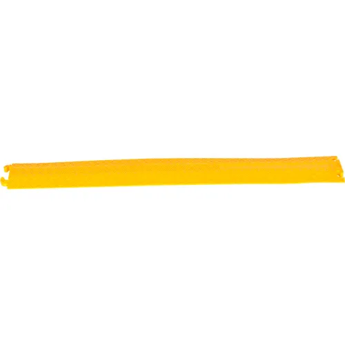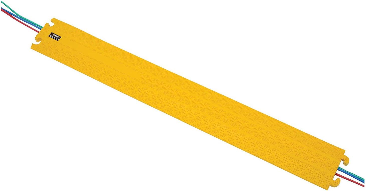 39"L x 5"W x 3/4"H molded hose and cable protector & ramp-yellow. Protects hoses and cables damage. Designed to protect hose and cable from roll-over damage. Ideal for office and pedestrian applications. Interlocking design connects units for longer lengths. Top surface of ramp features anti-slip traction design. Manufactured from black molded rubber. Cable ramp offers a usable channel width of 1-7/16"W x 1/2"H.