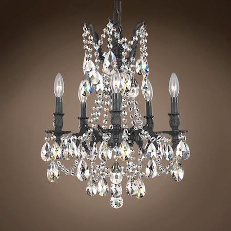 Joshua Marshal Traditional Versailles 5 Light 18" Crystal Chandelier, Dark Bronze Frame with Clear Swarovski Tear Drop Crystals, Hanging Ceiling Light