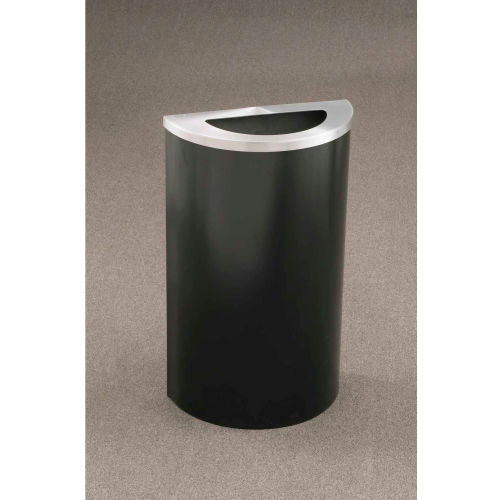 Glaro - 1891-BK-SA - Steel Half Round Open Top Trash Can, 14 Gallon, Satin Black/Aluminum Lid
