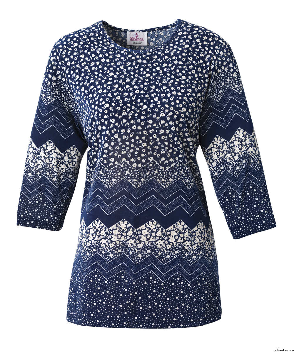 Silverts 247500603 Gorgeous Women Adaptive Top, Disabled Dressing At Its Best - Large - Navy & White