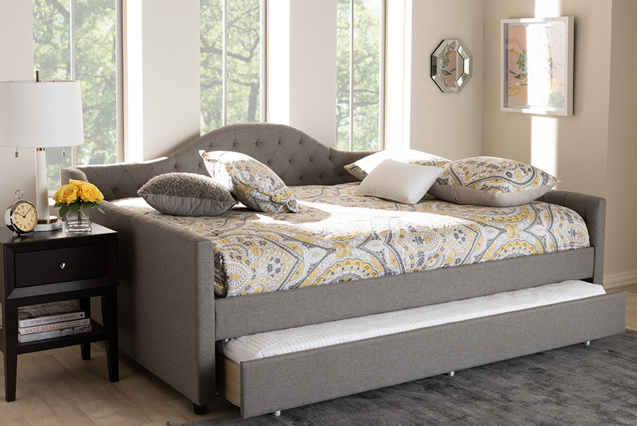 BAXTON STUDIO CF8940-Grey-Daybed-F/T ELIZA 82 5/8 INCH MODERN AND CONTEMPORARY FABRIC UPHOLSTERED FULL SIZE DAYBED...