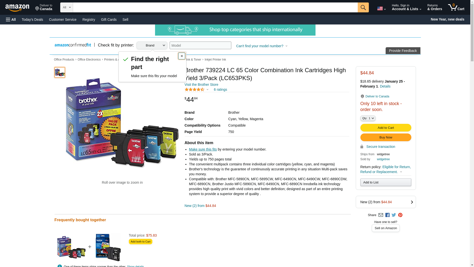 Brother 739224 Lc 65 Color Combination Ink Cartridges High Yield 3/Pack (Lc653pks)