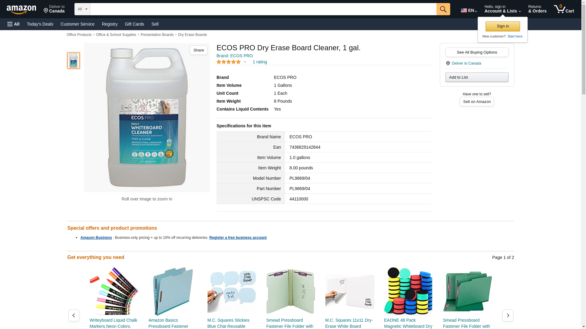 | Feature | Price For: Each Removes: Ink, Dirt From Dry Erase Markers Item: Dry Erase Board Cleaner For Use On: Dry Erase Boards Size: 1 gal. Country of Origin (subject to change): United States |