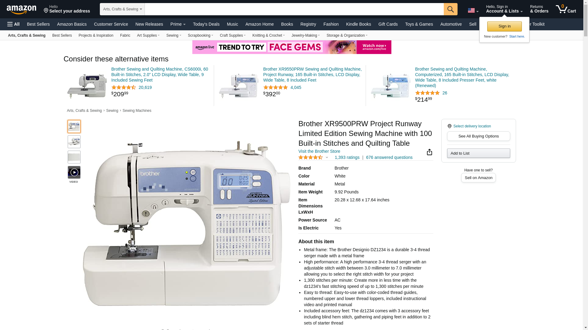 BROTHER XR9500PRW Sewing Machine Project RunwayT Limited Edition