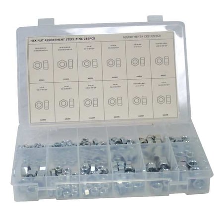 Grainger CPS1KZL9GR | Nut Assortment, Zinc Finish, 12 Sizes | 53WR08 | Raptor Supplies Worldwide
