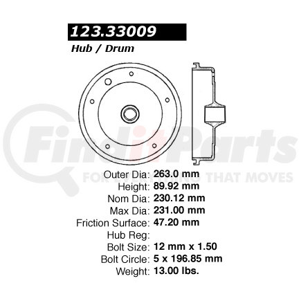 Centric Parts 123.33009 Brake Drum