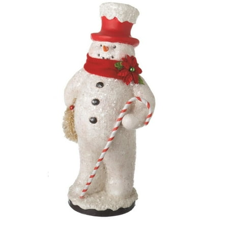 13" Cheerful Glitter Snowman with Red Top Hat Holding Wreath Holiday Table Top Figure