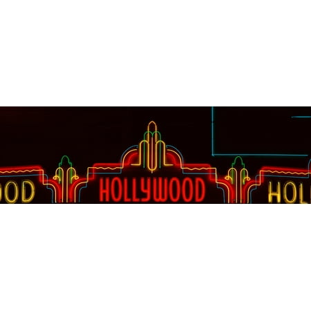 Neon Hollywood sign in panoramic format in Hollywood Los Angeles California Poster Print