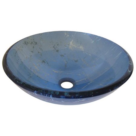 NOVATTO TID-269CH MARMO 16 1/2 INCH BLUE GLASS VESSEL BATHROOM SINK, CHROME
