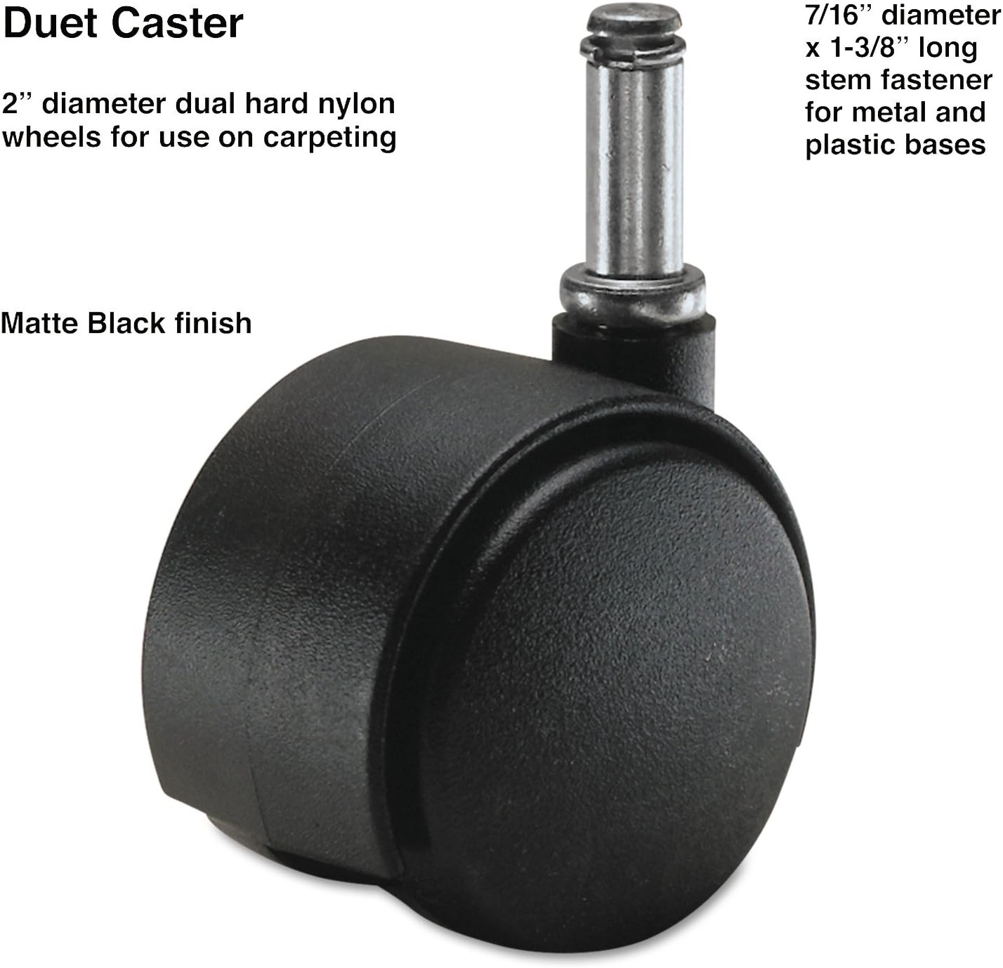 As an Amazon Associate, we earn from qualifying purchases. Master Caster CASTER, C, 2", TW, PLAS, 5/ST Brand: Master Caster . B00BT2KN6E Gallery Attributes Brand name, Manufacturer name, ManufacturerBrand: Master Caster Attribute00, moq, multiple1 Attribute01MAS64426 Attribute02, SKUB00BT2KN6E AttributeKey00Number of Items AttributeKey01Manufacturer Part Number AttributeKey02ASIN Extra Product NameMaster Caster CASTER, C, 2", TW, PLAS, 5/ST dataSourceamazonScraper qtyInStock0 snippetContemporary design, strength and performance make these replacement casters an excellent choice for office and home furnishings. With appropriate stems and fasteners, each caster can be used on wood, metal and tubular metal chairs, furniture and other equipment. All casters carry the manufacturer's guarantee against defects in material and workmanship. For light to medium duty. Wheels rotate independently. HOW TO SELECT CASTERS:1. Remove caster from leg of chair base. 2. Match the stem of the caster to diagram. Select the correct length and diameter. (Tops of stems can be flat or rounded--either will fit.) 3. Determine if caster is to be used on chair mats, hard floors or carpeting. Choose soft wheel casters for use on chair mats, linoleum (vinyl), and hard floors; hard wheel casters for carpeting. Distributor offers SellerSKUMOQIn stockMultiplePrices AmazonB00BT2KN6E11
