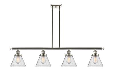 INNOVATIONS LIGHTING 916-4I-PN-G44 BALLSTON LARGE CONE 4 LIGHT 48 INCH SEEDY GLASS ISLAND LIGHT, POLISHED NICKEL,...