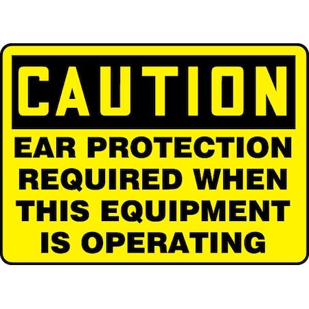 Accuform MPPE778VP Sign,"Caution Ear Protection Required When This Equipment is Operating", 7" Length x 10" Width x 0.055" Thickness, Plastic, 7" x 10", Black on Yellow