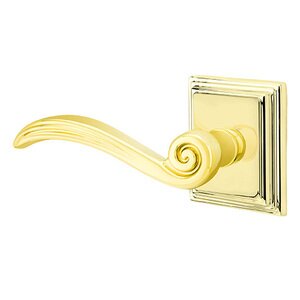 Brass Designer Levers Collection - Half Dummy Left Handed Elan Lever With Wilshire Rose in Polished Brass by Emtek - 8561EN.HALF.US3LH | MyKnobs