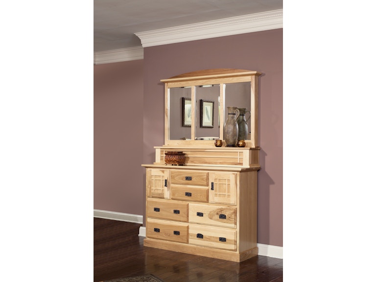 The Amish Highlands Bedroom Collection is heirloom quality furniture that you can pass down to your grandchildren. The value of American hickory is not only in its strength and durability, but also in its unique color and rich grain variations. The dark streaks range from a blonde hue to dark brown which emphasizes hickory's natural beauty. Each case piece is crafted with solid hickory drawer fronts, English dovetail construction, and full extension metal ball bearing glides. Each case piece is finished with hammered, antique bronze finished hardware. Unique features in this collection include hidden compartments in the Dressing Mirror and extra tall drawers in the Mule Chest. With the purchase of the Amish Highlands Bedroom Collection you are not only investing in furniture, you are investing in generations of memories.<br/><br/>Features:<br/><br/>- Finish: Natural<br/>- Material: Solid Wood<br/>- No MDF or Particle Board<br/>- Kiln-Dried Hardwood: This process establishes Moisture Content Uniformity and prevents warping, cracking, and splitting<br/>- 5-step Polyurethane finish showcases the beautiful wood grain and provides durability, scratch and water resistancy<br/>- Artisan Craftmanship<br/>- Heirloom-quality construction and traditional design elements create furniture that is both beatiful and dependable<br/>- English Dovetail Construction and Hammered Antiqued Bronze Hardware<br/>- Faux Door Fronts Provide Extra Tall Drawers<br/>- 1 Year Warranty<br/><br/>Specifications:<br/><br/>- Overall Product Dimensions: 60" H x 43.75" W x 19.75" D<br/>- Weight: 218 lbs<br/>- Faux Door Fronts Provide Extra Tall Drawers (11" High)