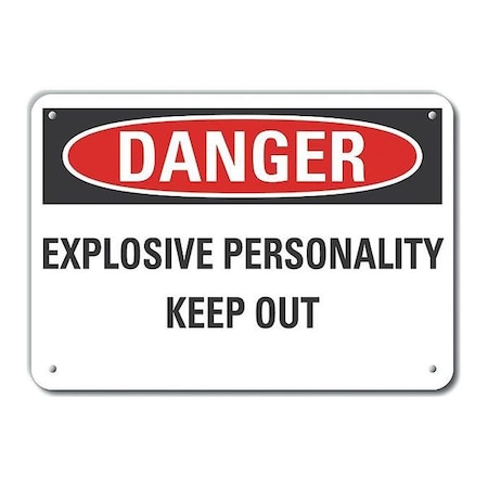 Danger Sign, Vertical Rectangle, Number of Printed Sides 1, English, Sign Format Traditional OSHA, Sign Legend Explosive Personality Keep Out, Sign Legend Background Color White, Sign Legend Style Text