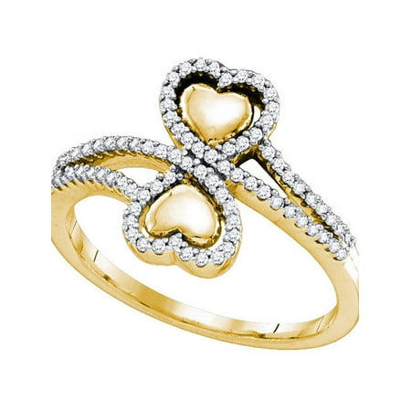 <ul> <li>10kt Yellow Gold</li> <li>1/4 Carats total weight</li> <li>Widest point width: 13 mm (.51 inches )<br />; Width of shank: 2 mm</li> <li>2.34 grams (approximately)</li> <li>Ring size selectable. All diamonds are natural and conflict-free in origin.</li> </ul>