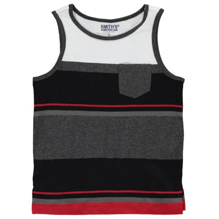 Smith's American uses color-blocking and striping to create this stylish tank! <ul> <li>Smith's American tank top</li> <li>Striped jersey construction</li> <li>Color-blocking</li> <li>Heather rib-knit trim</li> <li>Patch pocket at chest</li> <li>60% cotton, 40% polyester</li> <li>Machine wash cold, inside out</li> <li>Imported</li> </ul>