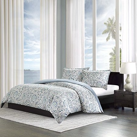 Echo Design Kamala Duvet Cover Twin Size - Blue, White , Floral Medallion Duvet Cover Set – 3 Piece – 100% Cotton Sateen Light Weight Bed Comforter Covers