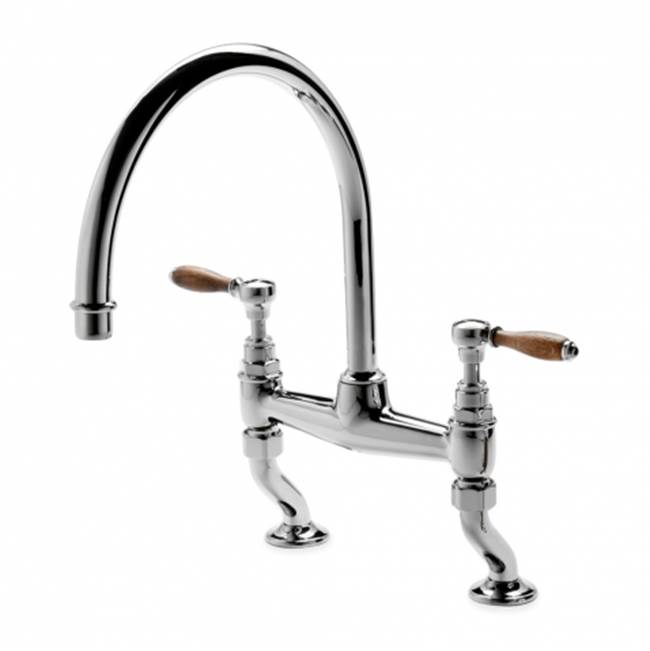 Waterworks - 07-59852-46876 - Easton Vintage Two Hole Bridge Gooseneck Kitchen Faucet, Oak Lever Handles in Chrome, 1.75gpm