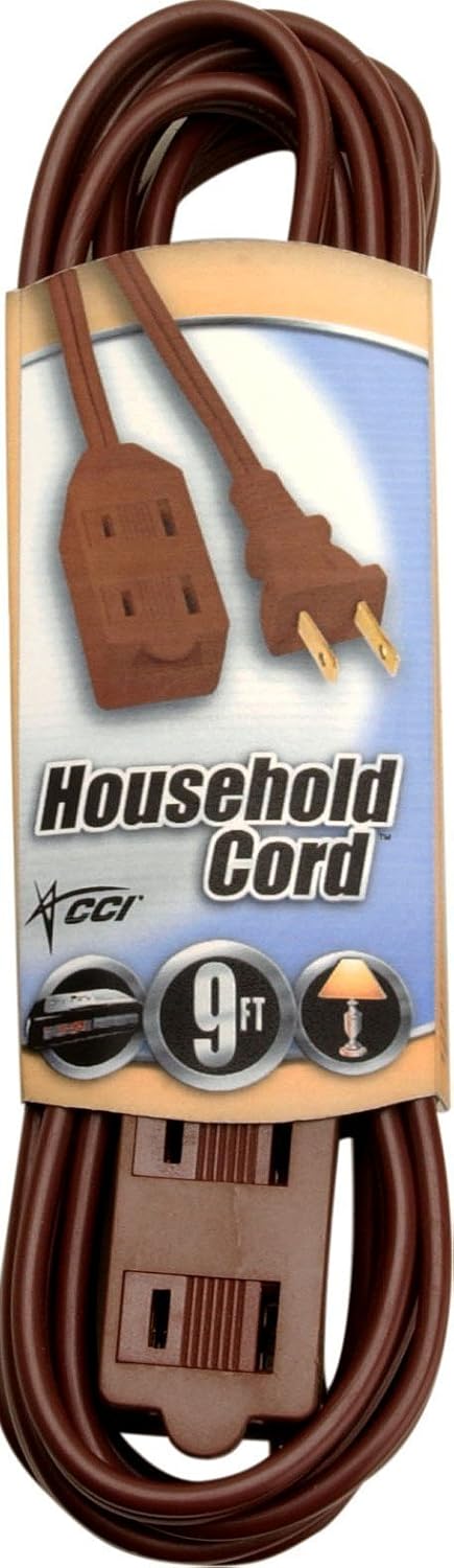 Coleman Cable 09402 16/2 SPT-2 3-Outlet Cube Tap Extension Cord with Safety Cover, Brown 9-Foot. Rated for 13-Amps. Cord is 9-feet long. Polarized extension cord. Turn one outlet into three. Multi-outlet extension cord is great for lamps and holiday accessories. The Coleman Cable (R) brand is a registered trademark of Coleman Cable Inc.