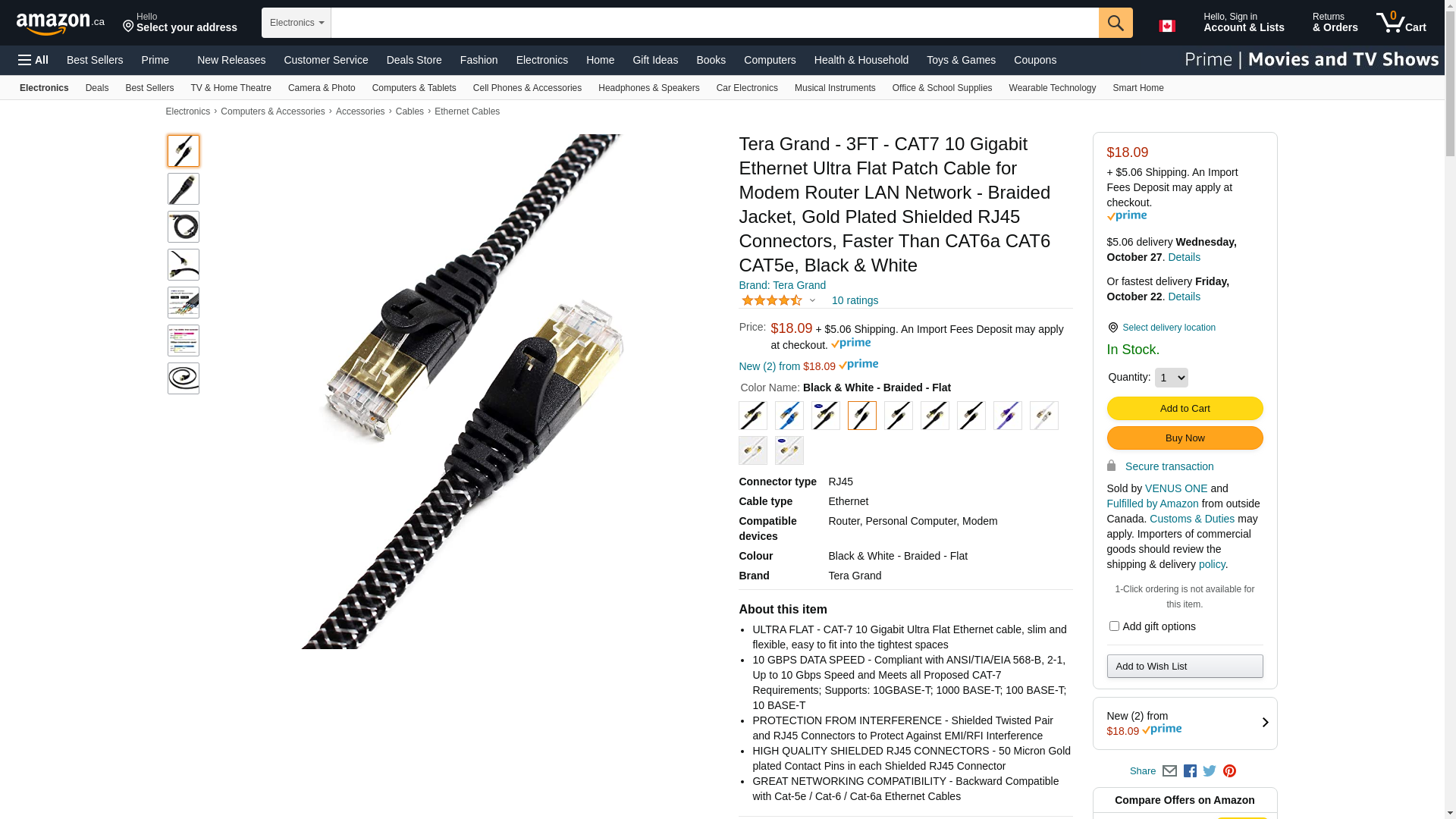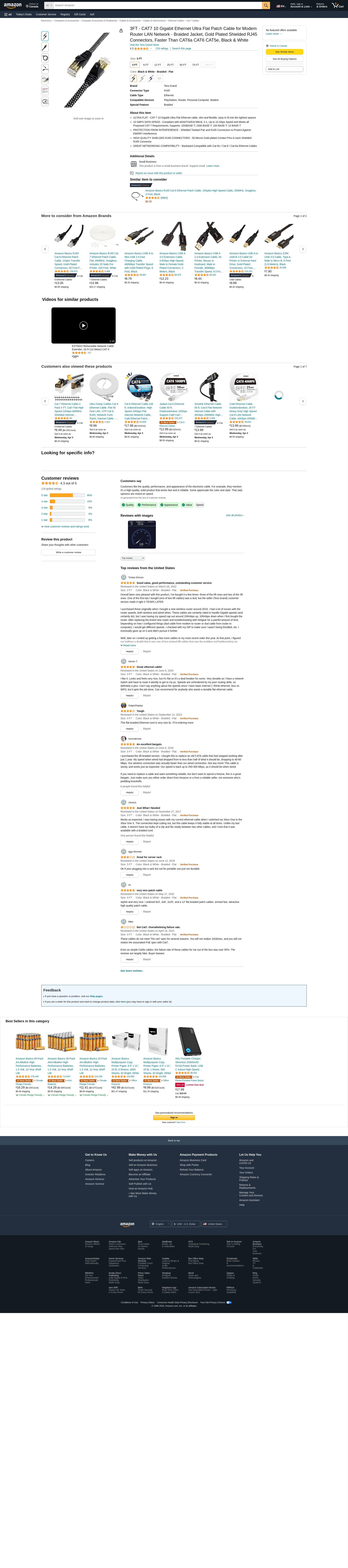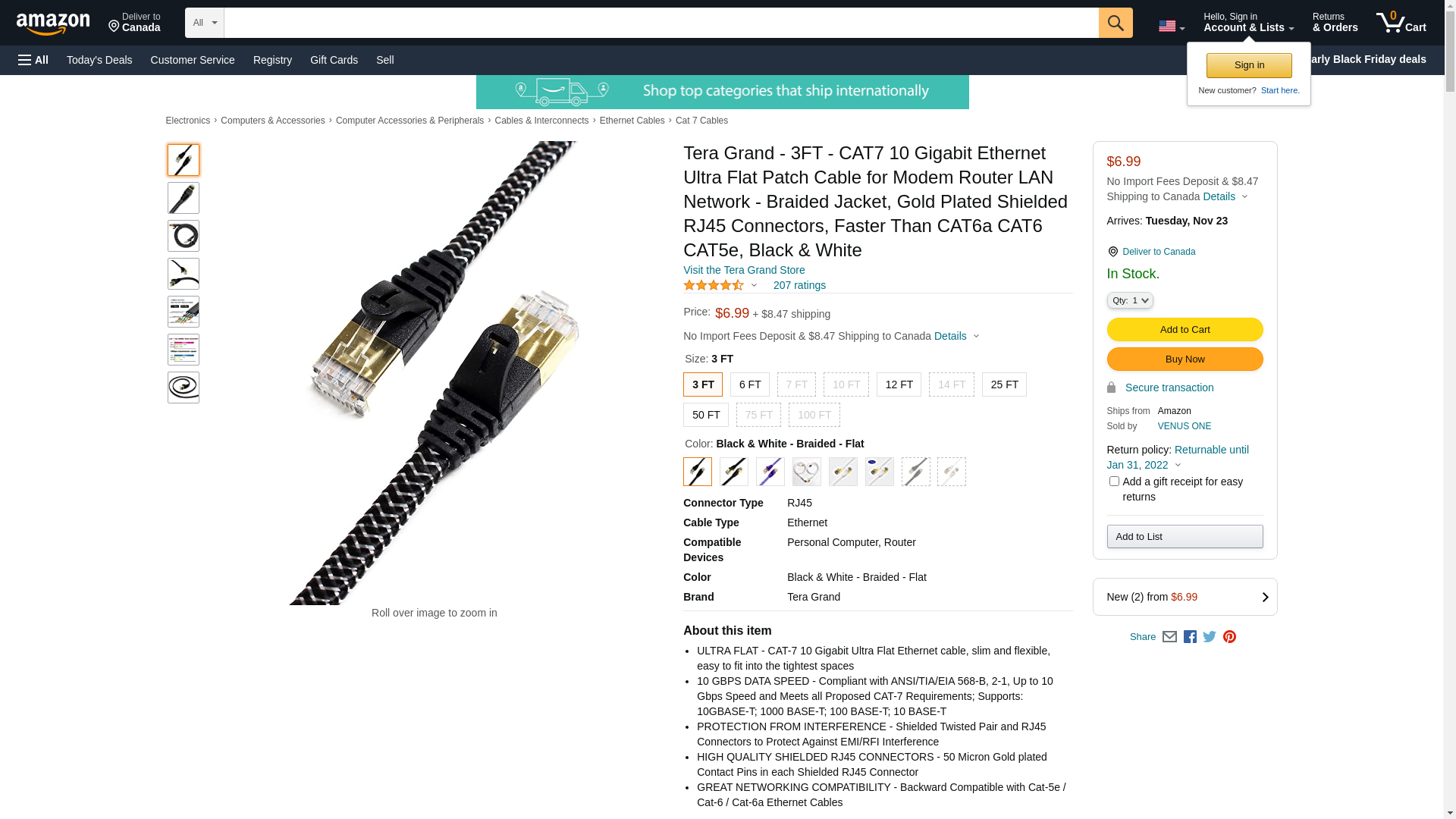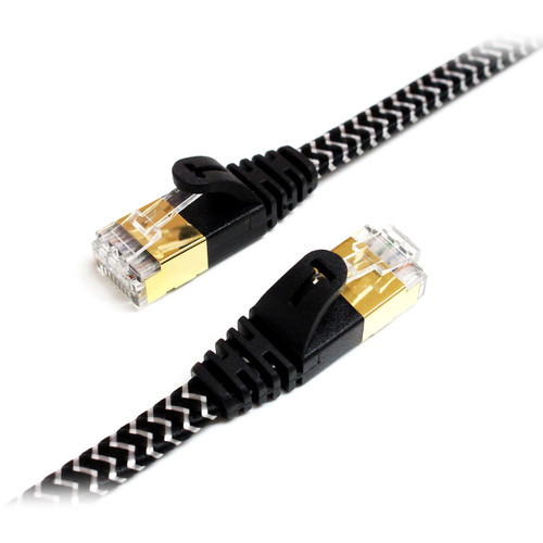Tera Grand - 3FT - CAT7 10 Gigabit Ethernet Ultra Flat Patch Cable for Modem Router LAN Network - Braided Jacket, Gold Plated Shielded RJ45 Connectors, Faster Than CAT6a CAT6 CAT5e, Black & White