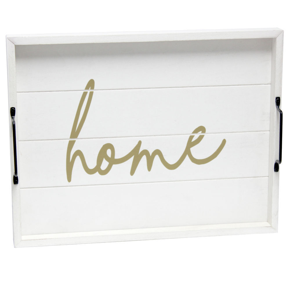 Elegant Designs HG2000-WHG Gold Coffee Table Decorative Wood Serving Tray w/ Handles, 15.50" x 12", White Wash Home