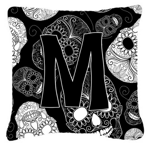 Carolines Treasures CJ2008-MPW1414 Letter M Day Of The Dead Skulls Black Canvas Fabric Decorative Pillow