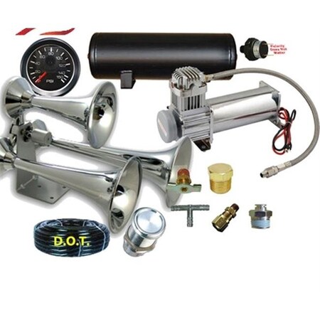 #1006 16" Train Horn 12v 3-Horn 150psi Compressor 3gal tank all hardware shown