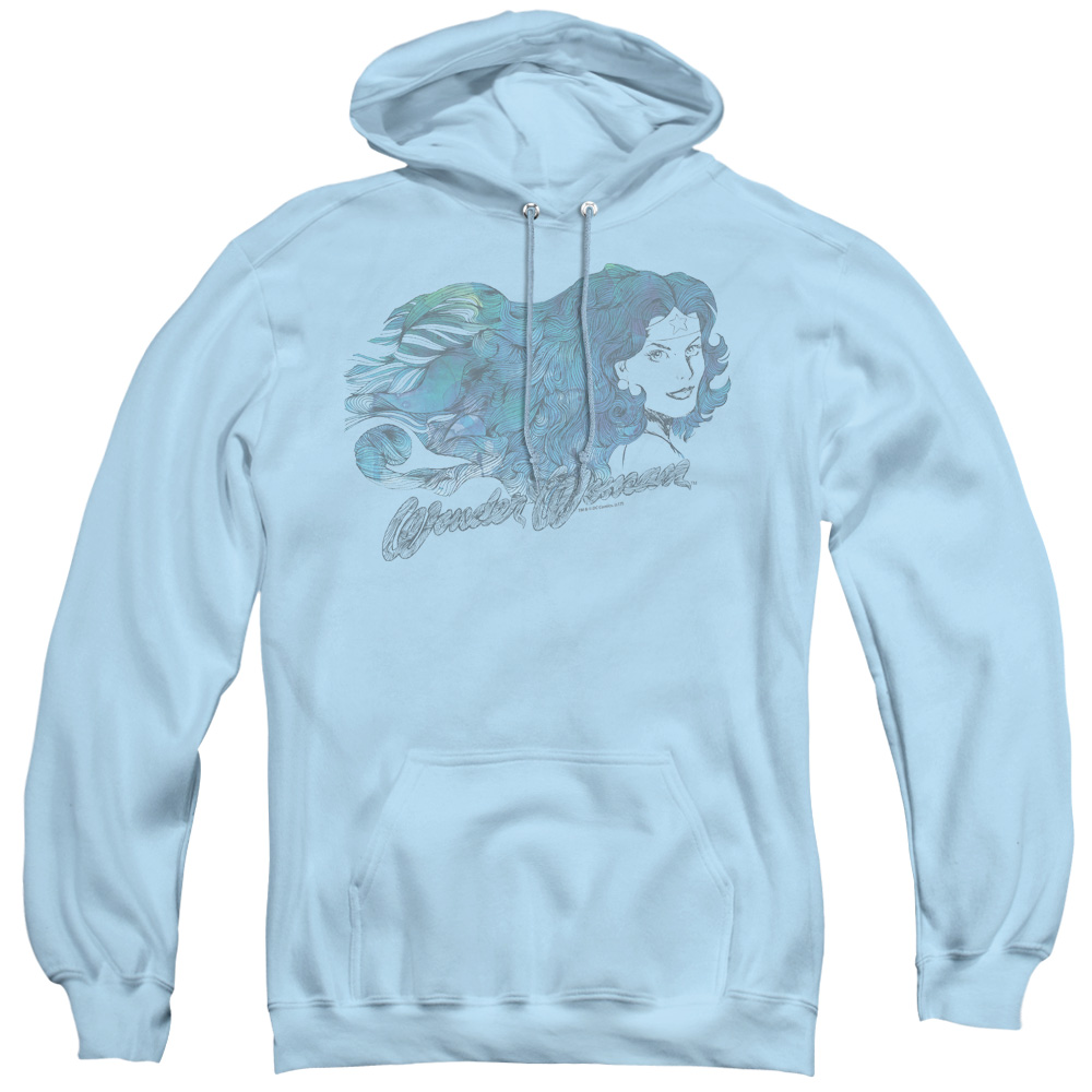 Trevco JLA305-AFTH-2 JLA & Watercolor Hair Adult Pull-Over Hoodie Light Blue - Medium