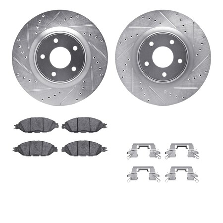 Dynamic Friction Company Front Brake Rotors-Drilled and Slotted-Silver with 5000 Advanced Brake Pads includes Hardware 7512-67125