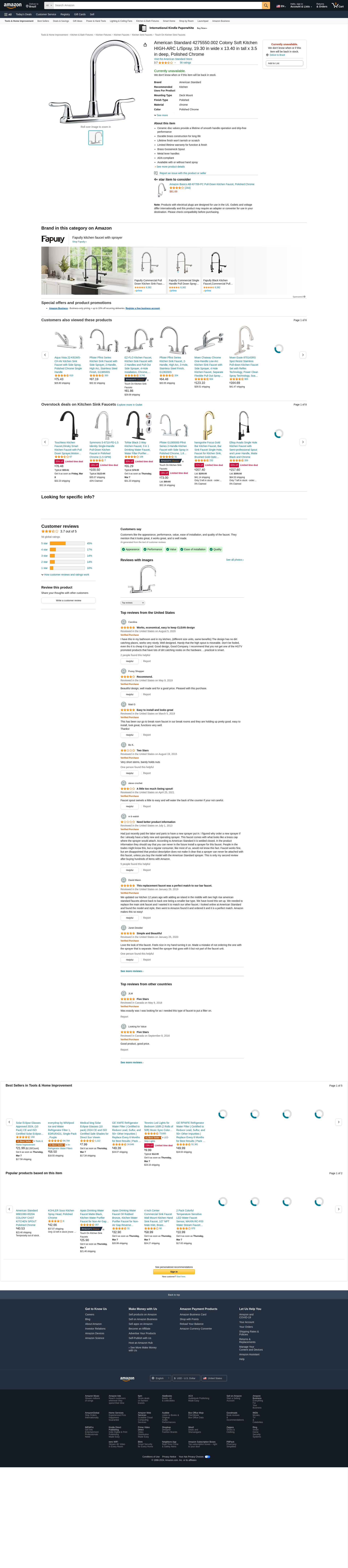 American Standard 4275550.002 Colony Soft Kitchen HIGH-ARC L/Spray, 19.30 in wide x 13.40 in tall x 3.5 in deep, Polished Chrome