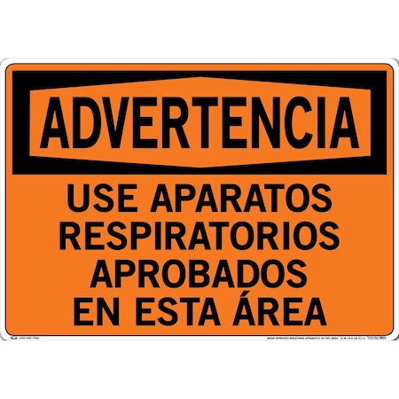 Vestil SI-W-18-E-LB-011-S WEAR APPROVED BREATHING APPARATUS IN THIS AREA/USE APARATOS RESPIRATORIOS APROBADOS EN ESTA ÁREA Warning Label, Vinyl, 0.011" Overall Size, 20.5" W x 14.5" H