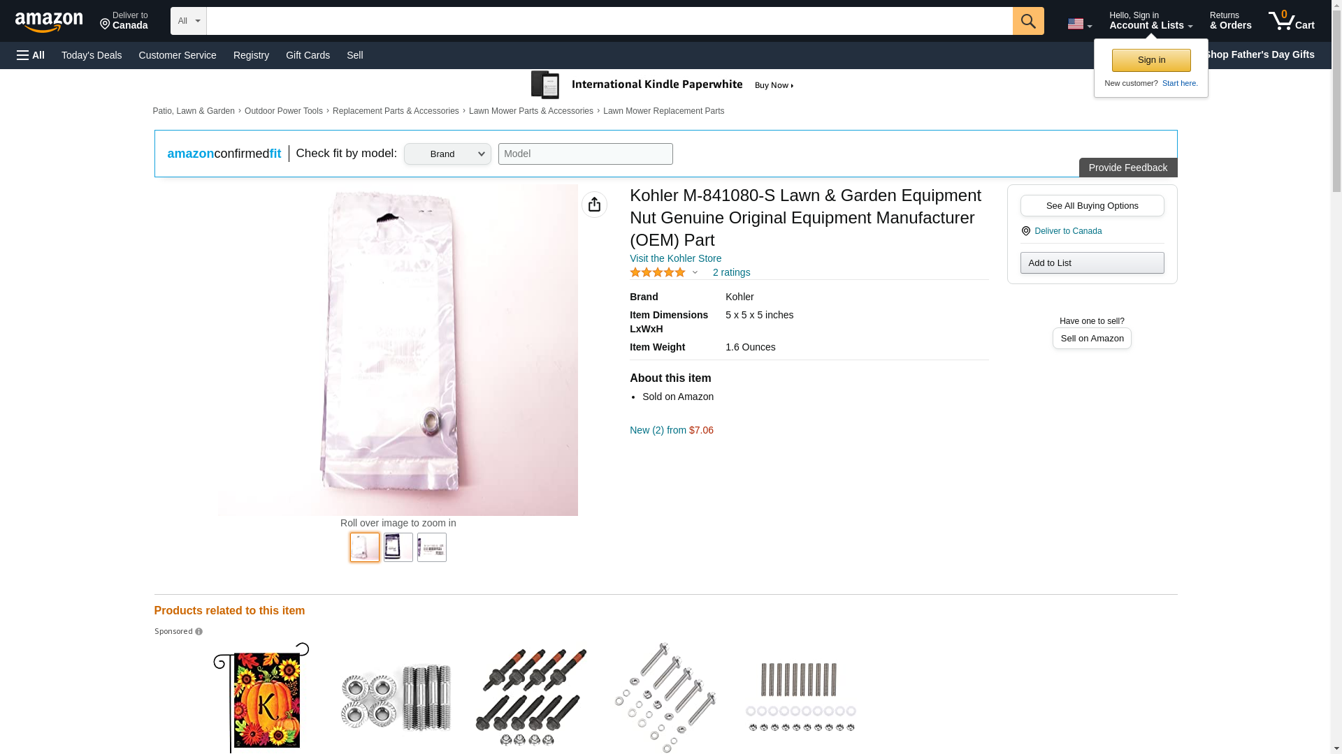 Kohler M-841080-S Lawn & Garden Equipment Nut Genuine Original Equipment Manufacturer (OEM) Part