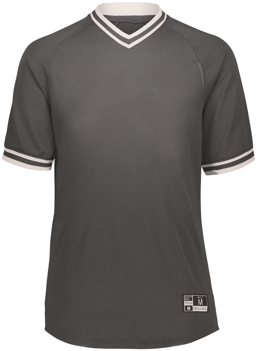 Holloway 221021.R04.L Adult Retro V-Neck Baseball Jersey, Graphite & White - Large