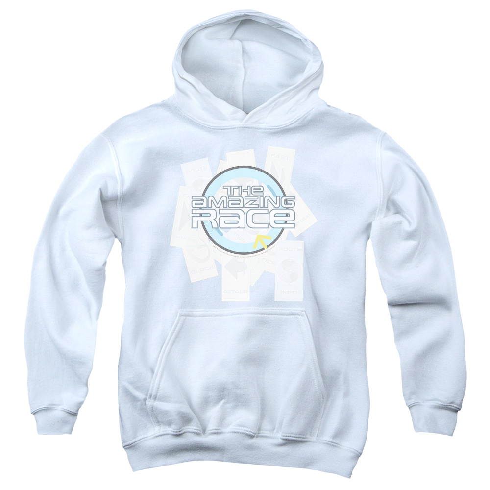 Trevco CBS121-YFTH-4 Amazing Race & The Race Youth Cotton Pull-Over Hoodie, White - Extra Large