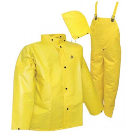 3-PIECE RAIN SUIT, JACKET/DETACHABLE HOOD/BIB OVERALLS, YELLOW, XL, FLAME-RESISTANT