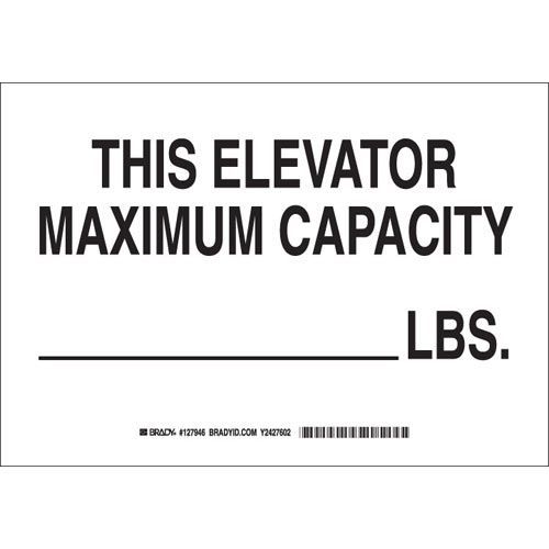 Brady 127944 This Elevator Maximum Capacity ________Lbs Sign - Non-reflective Aluminum - Black on White - 7 x 10