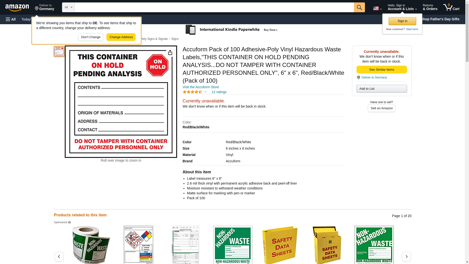 Accuform, MHZW26EVC, 6" x 6" Hazardous Waste Label "This Container On Hold - Pending Analysis" Adhesive-Poly Sheet Features: Can be used for limited outdoor exposure Gloss surface easily wipes clean of dirt, dust, and other liquids Permanent acrylic adhesive back 2.5-mil printed label with non-coat surface to write-on with pen or marker