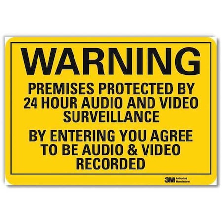 WARNING SIGN,SECURITY,BLACK/YELLOW,5IN H