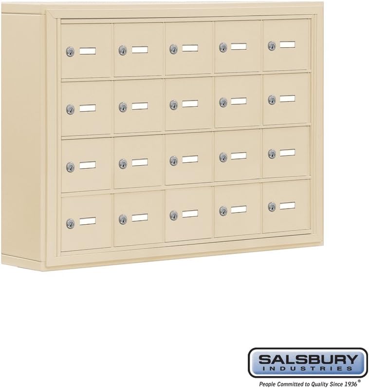 Salsbury Industries 19045-20SSK Cell Phone-4 Unit Surface Mounted-Master Keyed Locks with 5-Inch Diameter Compartments, Sandstone