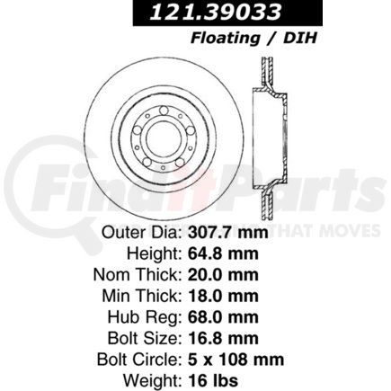 Centric Parts 121.39033 C-Tek Standard Brake Rotor