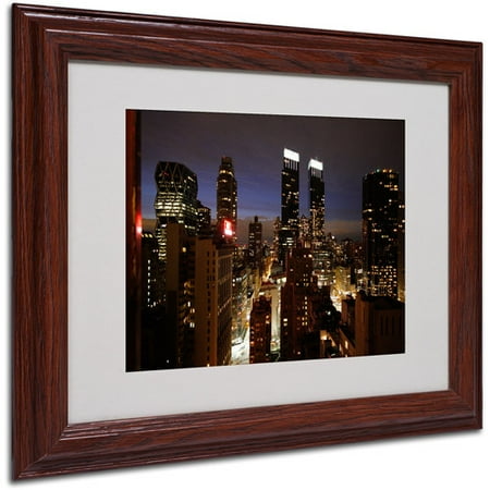 This ready to hang, matted framed art piece features city lights of a big city at night. <br /> <br />An 8x10 giclee print under acrylic in a 11x14 dark wood frame. Giclee (jee-clay) is an advanced printmaking process for creating museum quality fine art reproductions. This high quality print is matted using antique white matting and comes in a dark wooden frame. A clear acrylic facing is added to protect the print. The piece is fully assembled by professional frames and comes ready to hang. The antique white mat allows the image to really stand out, making it a great addition to any space.