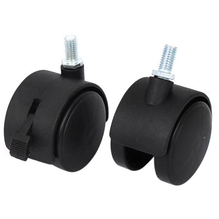 <ul> <li>Product Name: Threaded Stem Caster Wheel; Main Color: Black, Silver Tone</li> <li>Main Material: Plastic, Metal; Overall Size: 58 x 54 x 45mm/ 2.3" x 2" x 1.8"(L*W*H)</li> <li>Wheel Size: 50 x 13mm/ 2" x 0.5" (D*T); Threaded Stem Dia.: 8mm/ 0.3"</li> <li>Threaded Stem Length: 14mm/ 0.55"; Type: Dual Wheels 360 Degree Rotation</li> </ul>