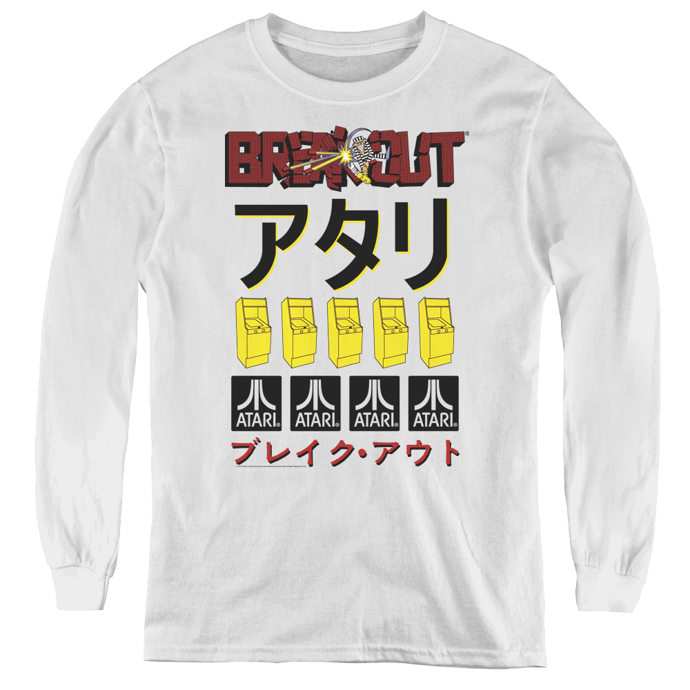 Trevco ATRI201-YL-2 Atari & Breakout Repeat-Youth Long Sleeve Tee, White - Medium