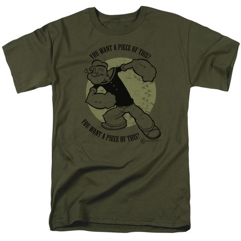 Trevco Popeye-You Want A Piece Short Sleeve Adult 18-1 Tee, Military Green - Large